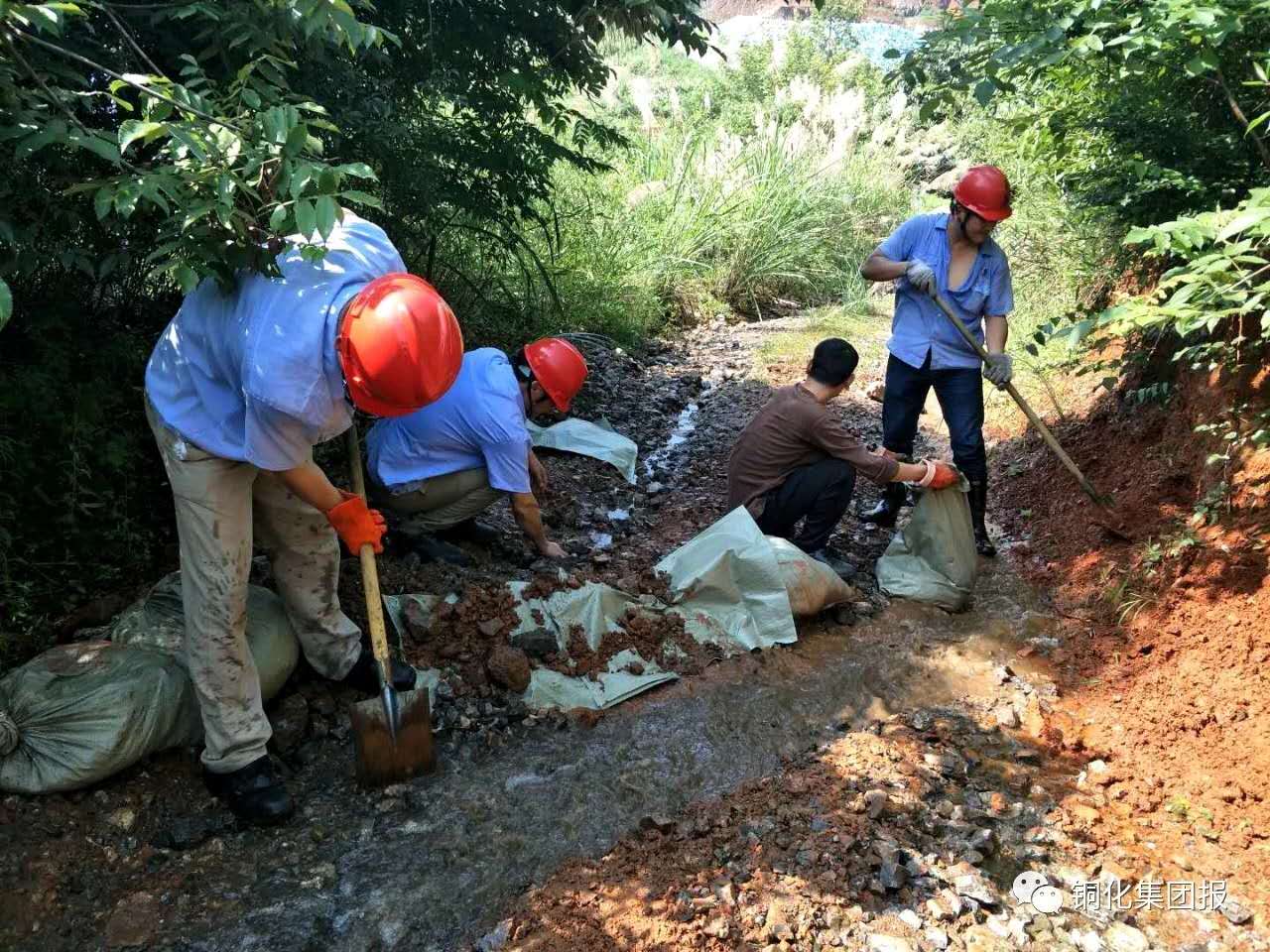 77日,大雨過后,新橋公司及時組織人員對工業(yè)場所和礦區(qū)道路淤泥、砂石、積水進行清理,修整,恢復(fù)被雨水沖塌的部分廠區(qū)圍墻和防水壩。期間,該公司黨群工作部組織員工清理副井堆礦場道路兩邊的砂石;選鐵廠組織員工筑壩截水,以修復(fù)被大雨沖塌的圍墻;選礦廠組織員工清理防洪水溝內(nèi)的碎石,確保溝渠暢通。下圖為員工在裝土筑壩截水。喬欣 李霞