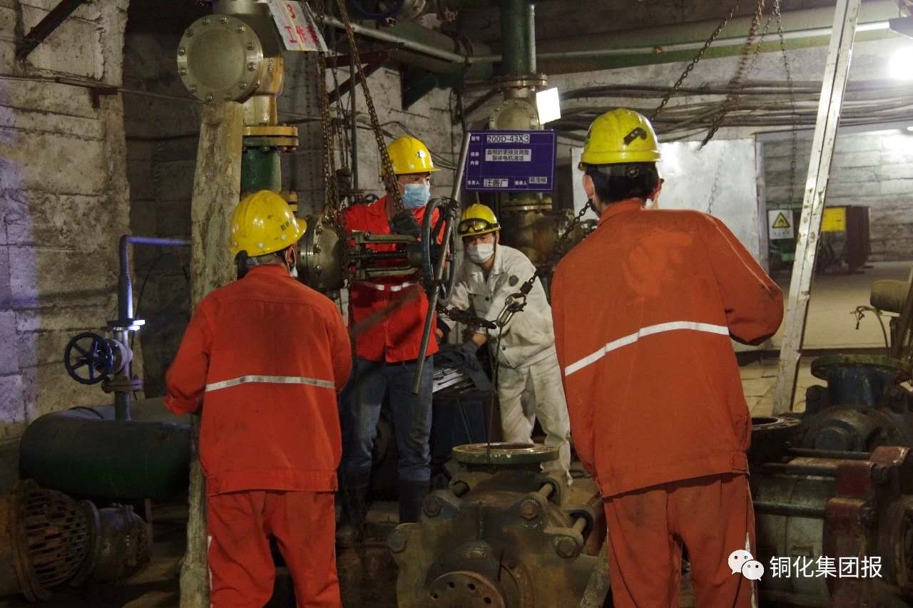 汛期期間,為保障井下采場安全作業(yè)與安全度汛,新橋公司運輸工區(qū)近日組織人員在負339泵房對3號防洪排水泵進行搶修。通過對水泵的拆卸、裝配、調(diào)試,使水泵很快又重新投入了排水。同時,為應(yīng)對雨季與地下豐水期,保障井下采場安全度汛,運輸工區(qū)加大巡檢力度,確保所屬各泵房設(shè)備完好率與開機率。下圖為大家在拆卸故障水泵。秦松濤